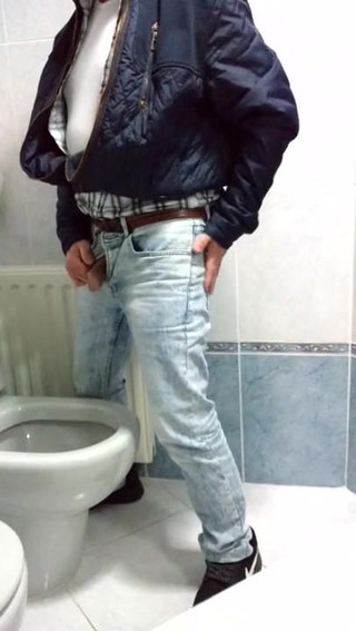 Kontol panjang yang belum dipotong kencing di depan umum di melalui urinoir