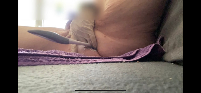 Masturbasi dengan sarung tangan lateks dan banyak pelumas