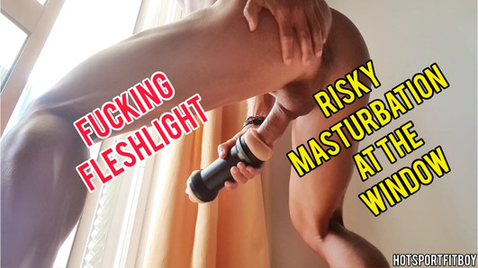 Masturbasi berisiko di jendela - ngentot dildoku sampai muncrat di dalam