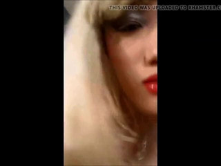 Seorang cross-dresser pirang berubah dari gaun imut menjadi celana ketat merah muda dan masturbasi!