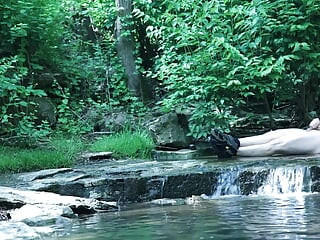 Bersantailah di pinggir air terjun, mencoba menyelidiki momen pribadi...