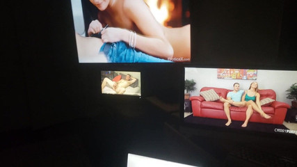 saya memompa saya besar 10 inch berbulu kemaluan sementara menonton porno gay porno dan saya istri tidur di yang sofa tepat di belakang saya a