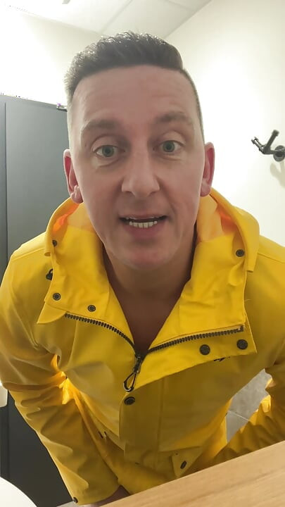 Matthias has a rubber boot and rain jacket fetish and gets really horny when he can wear both. He takes the opportunity in the office to fuck his boot and lick the cum off the boot. Really horny with his hard, crooked, big penis.